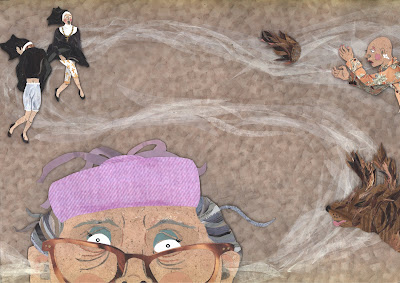 For one of my four major projects I was asked to illustrate 6 of Spike Milligan's nonsense poetry. Here is one of the spreads. It still needs a bit of work and I eventually will add text! |